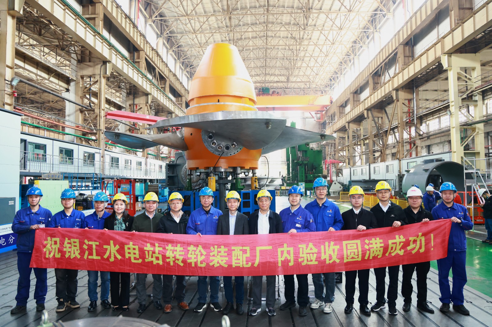 4月27日,AG真人银江水电站5号机组转轮装配厂内验收顺利完成,四川能源发展集团党委委员、副总经理张昊,AG真人副总经理、攀水电公司党总支书记、董事长徐孝刚一行全程参与现场验收。