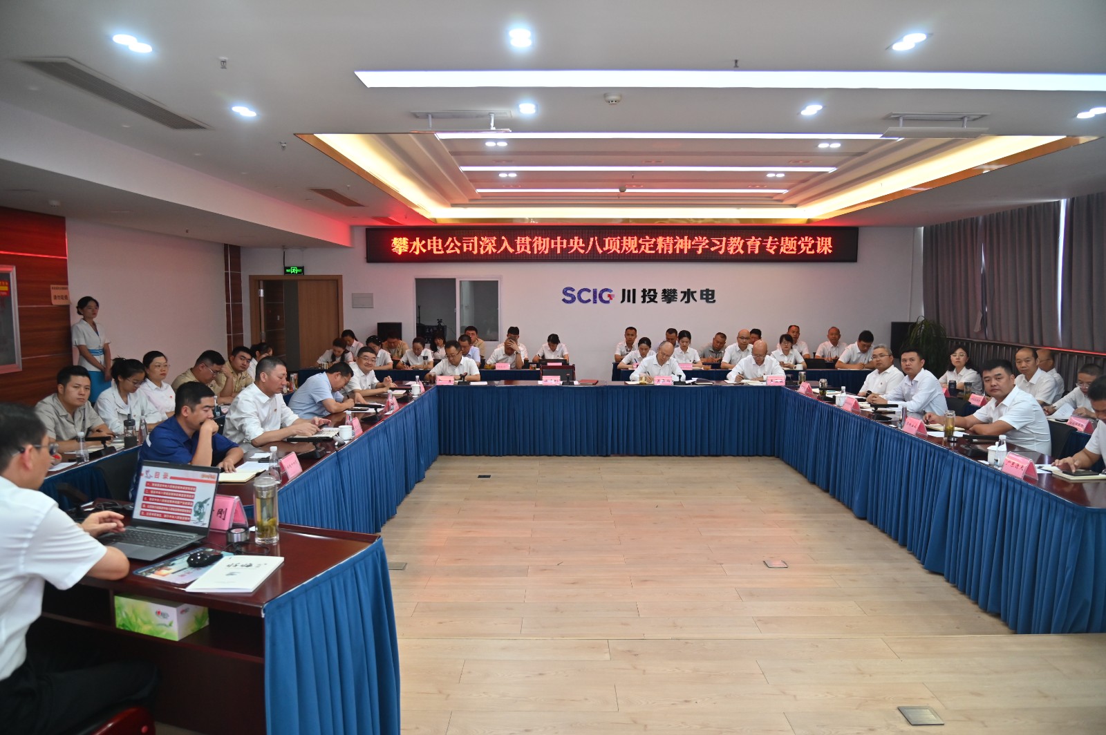 为深入贯彻中央八项规定精神学习教育,持续巩固作风建设成果,推进全面从严治党向纵深发展,7月1日,在党的104岁生日之际,AG真人副总经理、攀水电公司党总支书记、董事长徐孝刚讲授了以“扎实开展深入贯彻中央八项规定精神学习教育,为国企高质量发展提供坚强纪律作风保障”为题的专题党课,公司全体党员、职工,主要参建单位负责人及党员代表共计50余人参加。