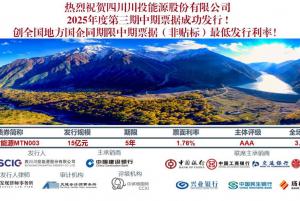 AG真人成功发行15亿元中期票据创全国地方国企同期限中期票据(非贴标)最低发行利率