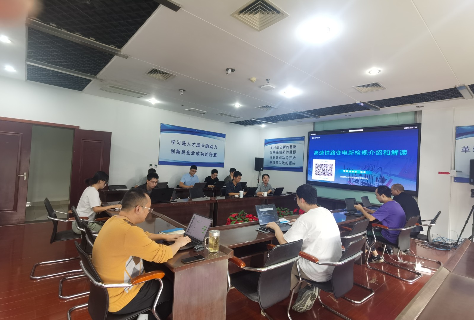 为紧贴智改数转,立足科技赋能,因地制宜发展新质生产力,落实公司“优化产品与需求的融合”要求,不断优化高铁供电智能运维系列产品功能和用户体验,近日,交大光芒研发中心举办技术沙龙,深入研讨国铁集团新修订的《高速铁路牵引变电所运行检修规则》(新检规)。本次沙龙由研发中心总经理助理杨昊主讲,相关产品经理、需求分析师、开发人员参加。