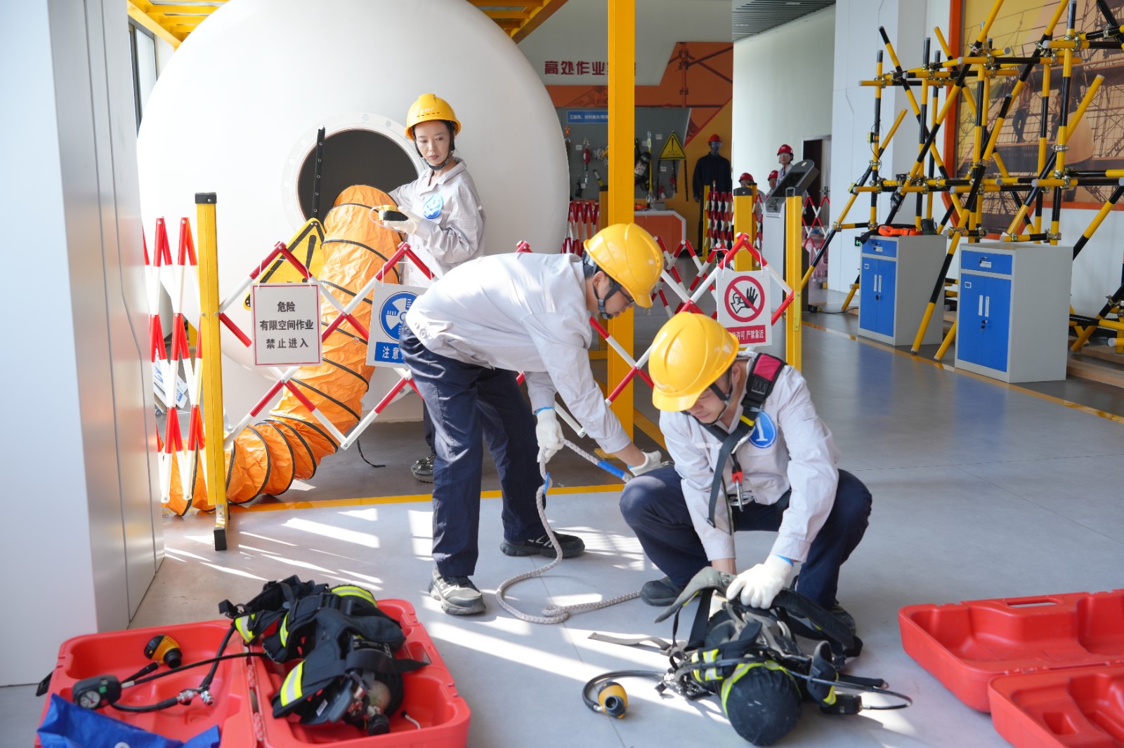 开幕式后,比赛紧扣“人人讲安全、个个会应急”,设置了“火灾逃生”和“有限空间救援”两个极具挑战性的项目。在火灾逃生项目中,模拟火灾现场烟雾弥漫,警报声尖锐刺耳,参赛队员们迅速反应,有条不紊地撤离模拟火灾现场。有限空间救援项目更是考验重重,队员们熟练操作,分工明确、密切配合,充分展现了电力职工的专业素养、应急处置能力和团队协作能力。