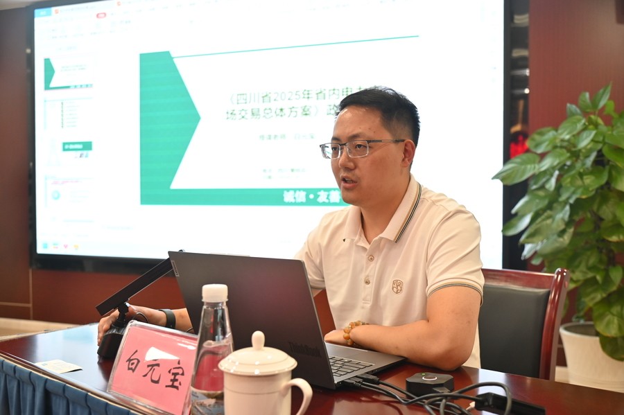此次培训邀请到四川能投综合能源有限责任公司电力交易分公司副总经理白元宝,围绕四川省电力销售政策、交易实施方案等方面内容进行详细讲授。白元宝首先对《四川省2025年省内电力市场交易总体方案》进行政策解读;再从“水火风光同台竞争、分时签约衔现货、零售市场防风险”核心变化点、对市场成员要求、电力批发交易、电力零售交易、价格及结算机制、市场衔接事项等方面进行讲授;最后针对发电企业的电力交易方案,从中长期及现货交易,围绕规则要求、市场形势、边界条件、交易组织模式等方面进行详细讲解,并对现货市场下的中长期交易、增强抗市场风险能力、构建交易组织体系、现货市场的影响等重点、难点的核心事项进行了分析和讲授。