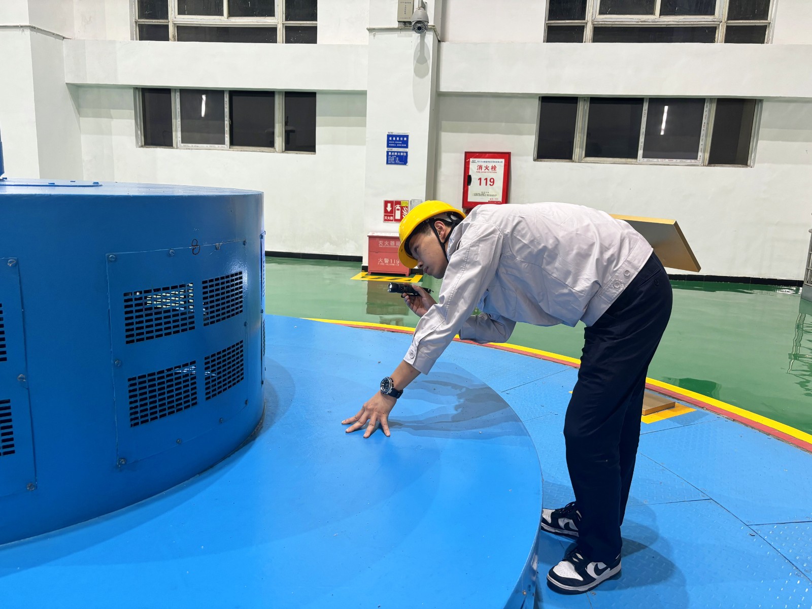 运行人员、ONCALL人员日复一日地攀登着6层楼高的“电力马拉松”,在4楼中控室与负2层厂房之间往返穿梭,从投运至今的13年时间里,1千余次开关动作,记录着他们攀登的足迹,他们精准掌控调节着导叶开度和瓦温参数,用专业守护电网稳定。“AG真人·(中国)官方网站是守护光明的‘夜班人’”,这句看似轻松的玩笑背后,是365天全年无休的执着坚守,他们用脚步丈量责任,用专业守护光明。