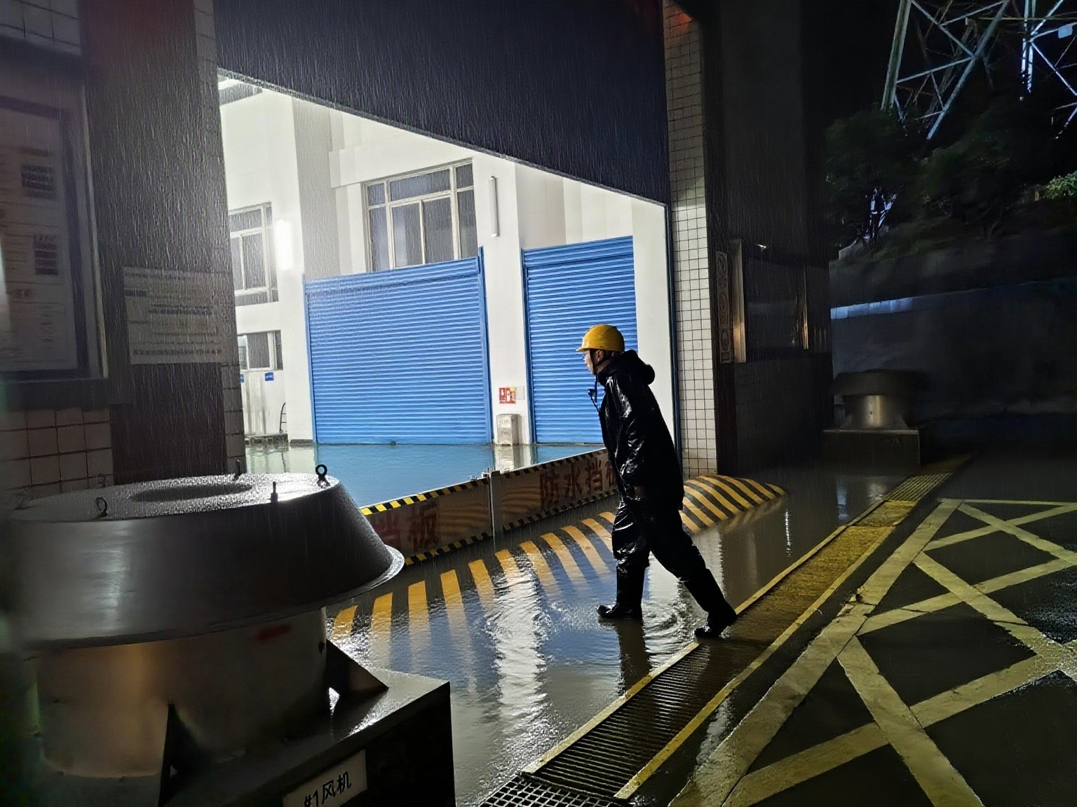 10分钟内完成集结并冒雨展开全面排查,及时发现厂外沟渠洪水倒灌险情,值守人员毫不犹豫地踏入积水,在关键区域架设挡水板、加固排水系统,经过连续4小时的艰苦奋战,最终成功守护了主厂房、副厂房等核心区域的安全。“雨再大,也要保住发电设备!”——这掷地有声的誓言,正是他们用钢铁意志守护万家灯火的最好诠释。